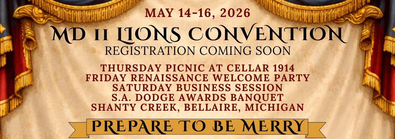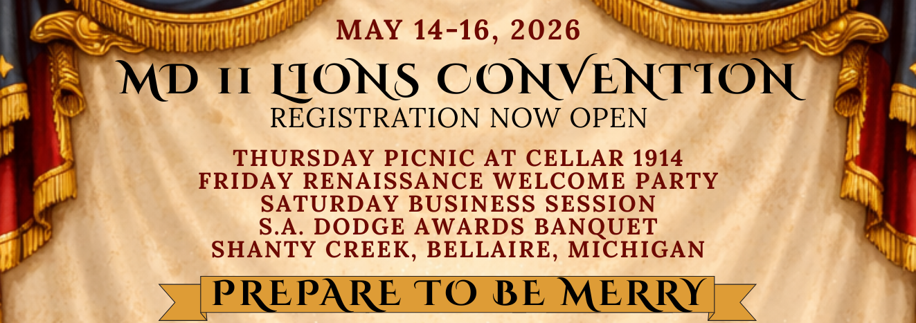 Mission Statement – The Lions of Michigan will support the mission of Lions International and will serve Michigan communities, support Lions district, state, and international projects and promote membership, leadership, and training at all levels.